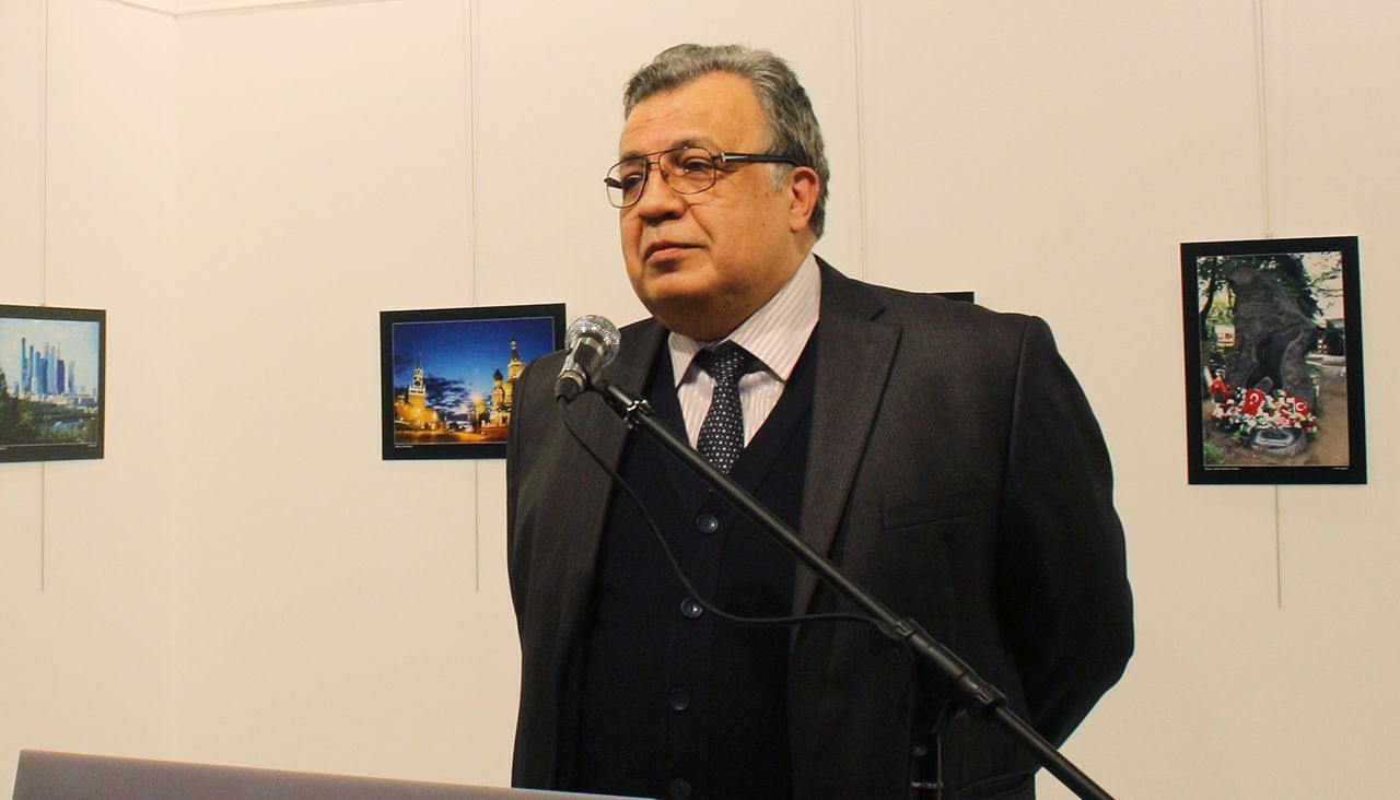 По сообщениям турецких СМИ, нападавший кричал «Убирайтесь!» и объяснял свои действия протестом против действий России в Сирии. Помимо прочего, он якобы говорил: «Не забывайте Алеппо, не забывайте Сирию» и выкрикивал «Аллах акбар». Мужчина выглядел как охранник или сотрудник служб безопасности. Как следует из видеозаписей с места событий, убийца не собирался скрываться или прятаться.