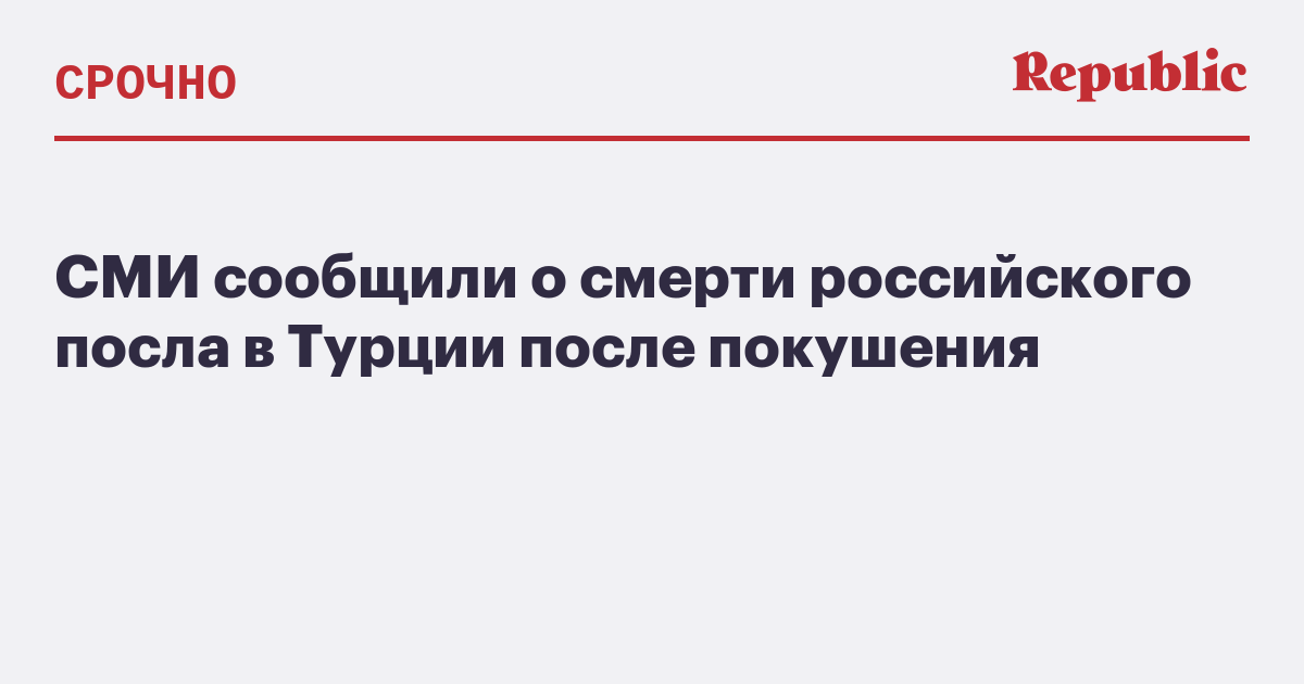 СМИ сообщили о смерти российского посла в Турции после покушения