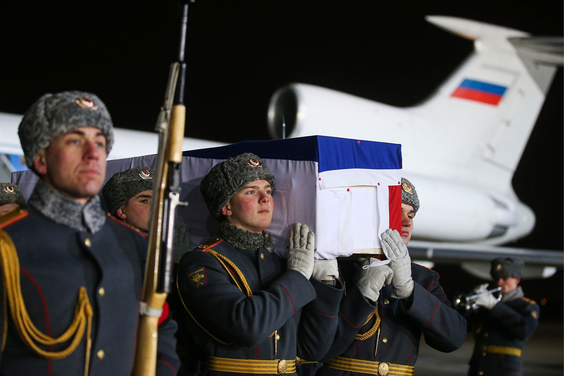 Дата20.12.2016АвторСкрытИсточникМедузаСохранённая копияInternet ArchiveOriginal MaterialShow translationТело Андрея Карлова доставлено в Москву. ФотографияФото: Валерий Шарифулин / ТАСС Гроб с телом российского посла в Турции Андрея Карлова, застреленного в Анкаре 19 декабря, встречают в московском аэропорту Внуково.