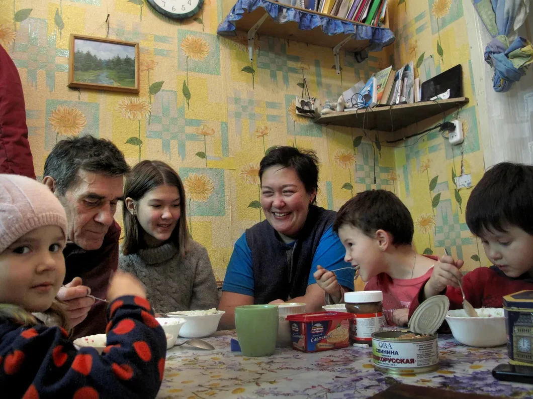 Уже пятнадцать лет (и несколько зим) Лоскутова на Соловках. Живет в доме типа «барак». Дом стоит у аэропорта. В окно видно локатор. Иногда он крутится. Это к острову приближается самолет. В доме две печки и четверо детей (4—12). На полке биография Джека Лондона. Лоскутова говорит: «Подруга съездила сюда в свадебное путешествие. У нее муж кагэбэшник. Я все шутила, что его тянет в места «боевой славы». Вернулись, рассказали. И меня тоже потянуло. Первый раз я приехала в 2001 году. Меня привела в совершенный восторг красота этих мест. Через год или два я встретила тут Колю, и началась соловецкая житуха».