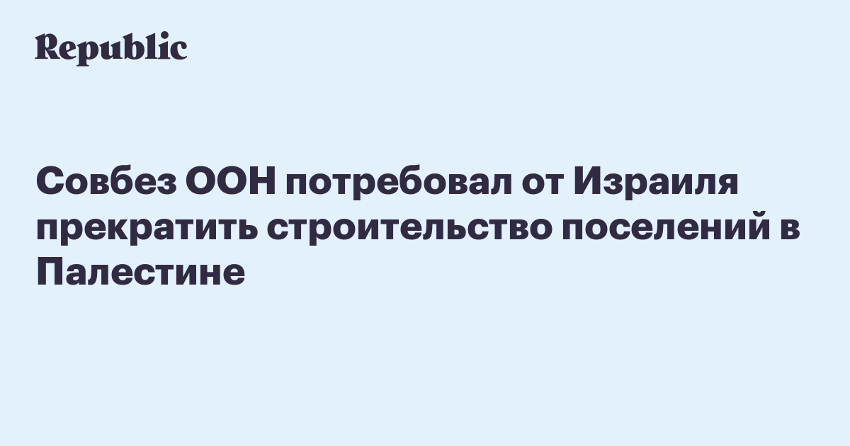 Совбез ООН потребовал от Израиля прекратить строительство поселений в Палестине