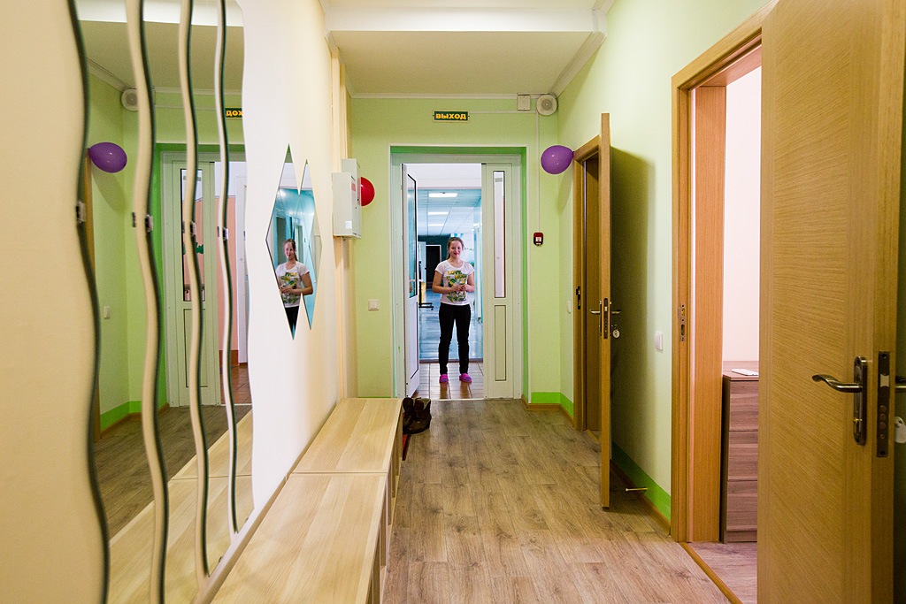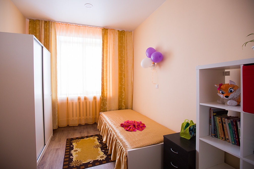 В модернизированной группе — прихожая и гардероб для верхней одежды на входе, как и положено дома, отдельные спальни либо на одного человека, либо на двух, максимум трех, если это братья и сестры. Новая мебель, текстиль, никаких «бабушкиных ковров» и потертых углов, можно обживаться, обставлять полочки и стеллажи своими вещицами, фотографиями в рамочках, игрушками и книжками. Можно повесить другие шторы, если те, что уже висят, вдруг не подходят к цвету глаз. Замдиректора «Солнечного города» Аня Волкова смеется: «А подросток не промолчит, если штора к глазам не подходит», — и ей можно верить, потому что мало кто больше общается с детьми в госучреждениях, чем она, разъезжая по области с «Волонтерским караваном».