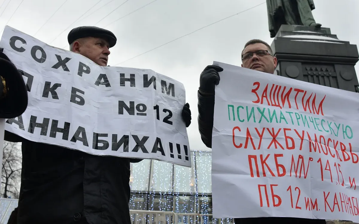Пациенты и врачи психиатрических клиник, решение о фактической ликвидации которых в рамках реформы столичного здравоохранения ранее было принято городскими властями, вышли в воскресенье 25 декабря к памятнику Пушкину на Страстном бульваре.
