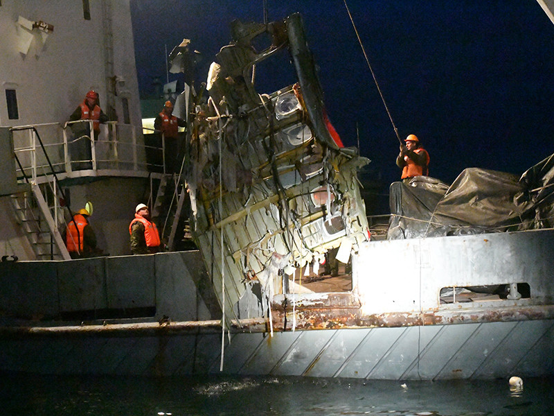 Ранее ФСБ России официально сообщило, что "по информации Минобороны РФ, на борту самолета находились 84 пассажира и восемь членов экипажа, багаж пассажиров и 150 кг груза (продукты питания и медикаменты)". "Грузов военного и двойного назначения, пиротехнических средств указанным воздушным судном не перевозилось", - заявили в ЦОС ФСБ.