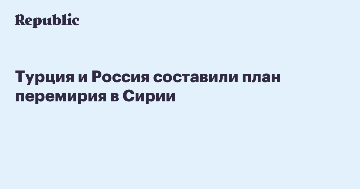 Турция и Россия согласовали план перемирия в Сирии, сообщает Anadolu. Его представят сторонам конфликта, передает агентство.
