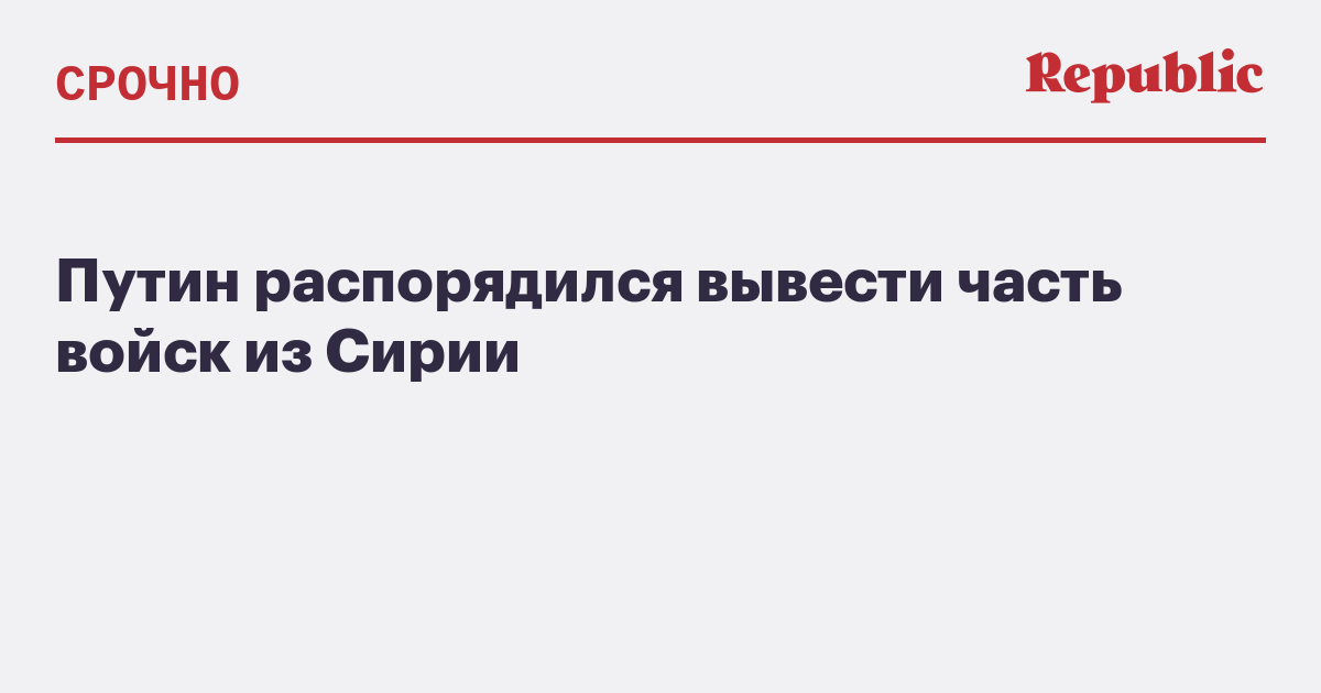 Путин распорядился вывести часть войск из Сирии