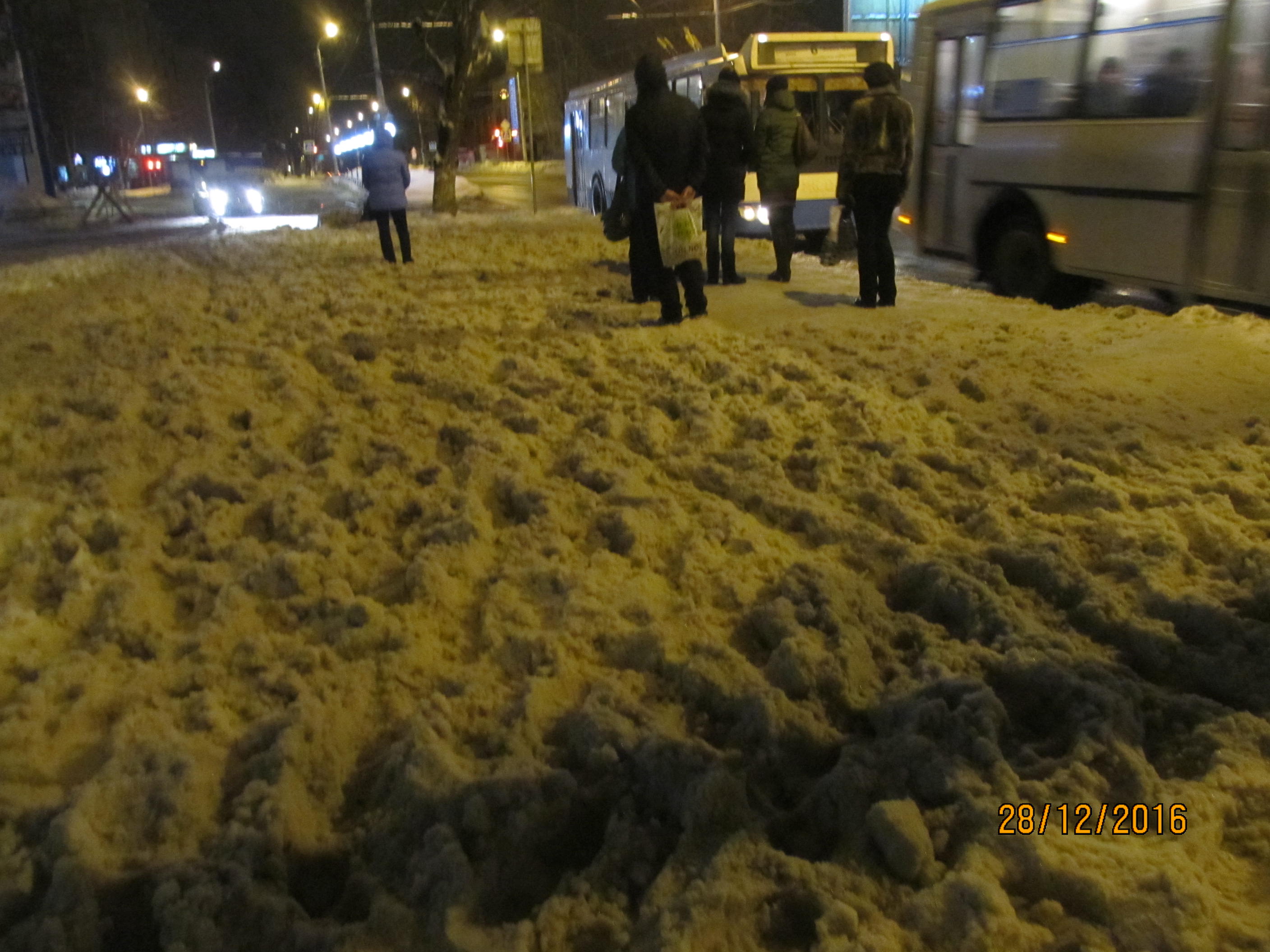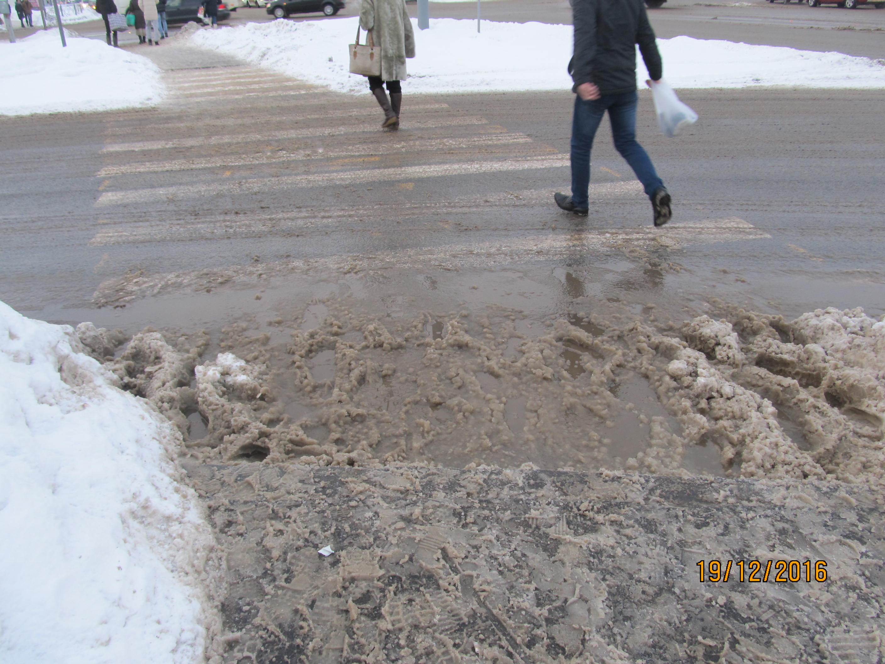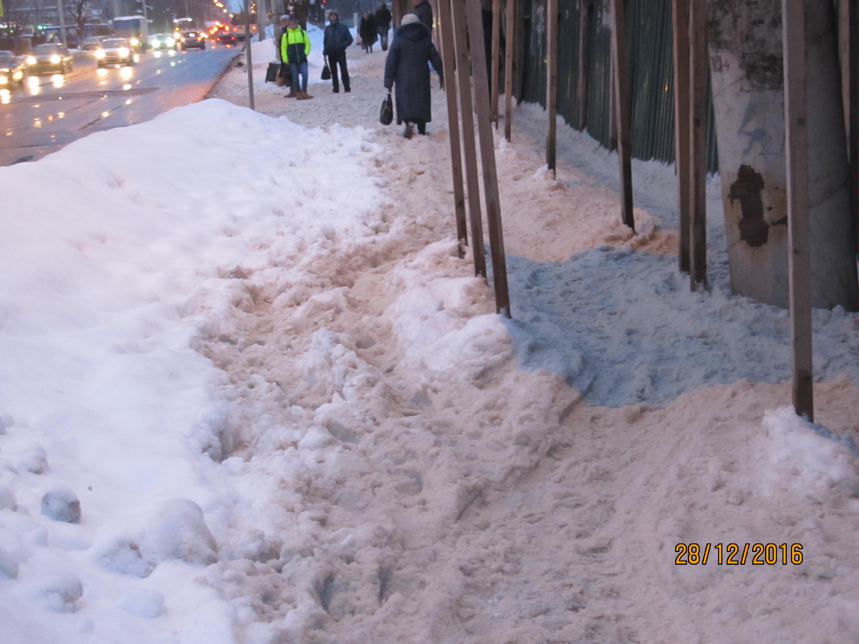 С начала декабря в Костроме выпадает снег, что неудивительно – зима же. Полмесяца коммунальные службы держались, как могли. Но примерно с середины декабря начались оттепели. А это, как мы знаем, - сосульки, обрушения снежных навесов вниз, заторы на дорогах. Однако дорожного коллапса не случилось – скольжение шин, соль, плюсовые температуры позволили снегу довольно быстро таять на дорогах. Ну и, конечно, на улицах города по ночам работала спецтехника. Зато в Костроме случился тротуарный коллапс. Уже недели две пешеходы вынуждены преодолевать месиво из снега, мокрого снега и грязи. Вся эта «каша» получается над лужами растаявшего снега или надо льдом. От нечищеных тротуаров во многих, даже центральных, местах остались лишь узенькие проходы. Зачастую такие проходы-пролазы возникают на пути граждан для перехода через дорогу, а далее, у бордюров дорог, – препятствие в виде грязной лужи. На остановках – та же «каша», и ещё более глубокая и грязная полоса - до автобусов. Обувь постоянно промокает, покрывается слоем соли, портится. С колясками не пройти. Население зароптало.