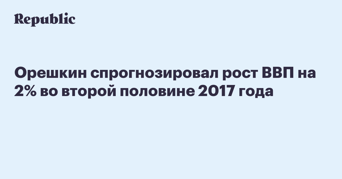 Министр экономического развития РФ Максим Орешкин в интервью «Коммерсанту» заявил, что со второй половины 2017 года ВВП страны будет расти на 2% в годовом выражении.