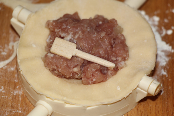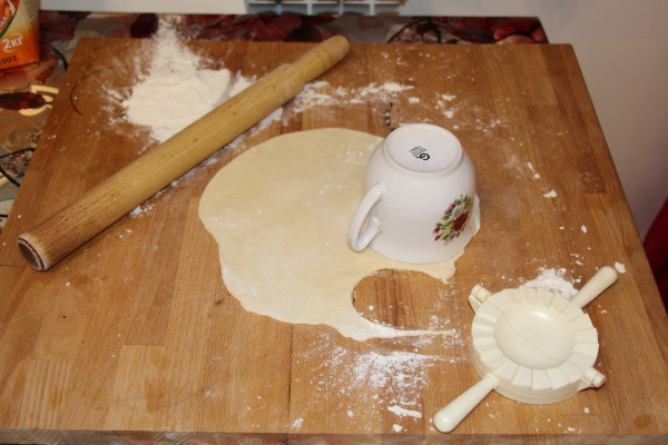 Лепили подкогыли (падкагыль) руками и на "машинке" для вареников. В некоторые вареники положили заранее приготовленные "сюрпризы".