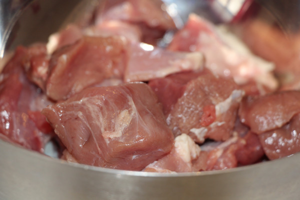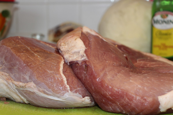 Для начала взяли два хороших куска мяса: деревенской телятины и свинины.
