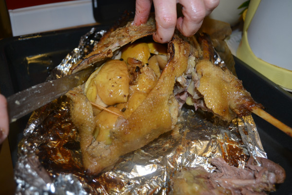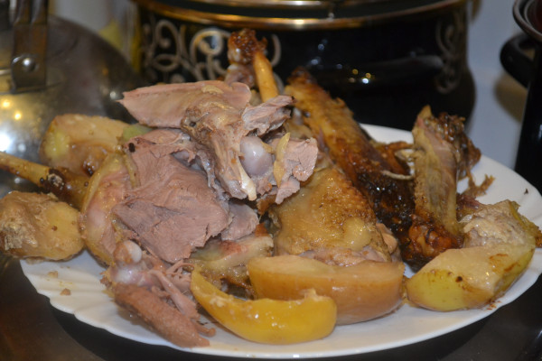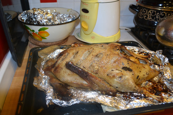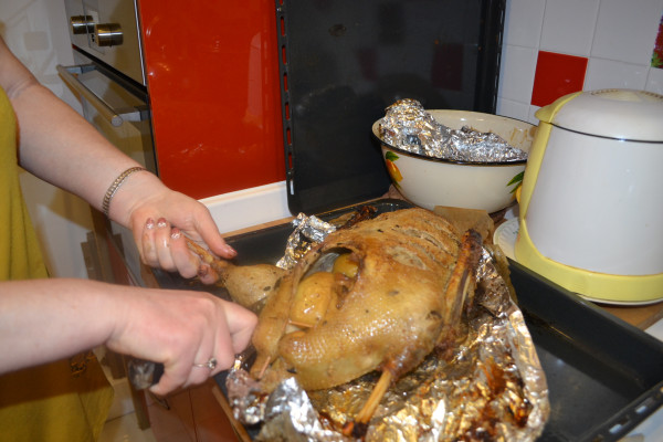 Вдоволь нахохотавшись, вернулись в дом, где нас ждал великолепный рождественский гусь с яблоками и печёным картофелем.