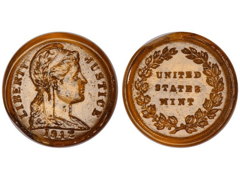Professional Coin Grading Service На нумизматическом аукционе, проведенном аукционным домом Heritage Auctions в США, была продана уникальная монета 1942 года, изготовленная из стекла. Предпродажная оценка лота составляла 30 тысяч долларов, но в результате ожесточенной торговли между двумя участниками итоговая цена составила 70 500 долларов.