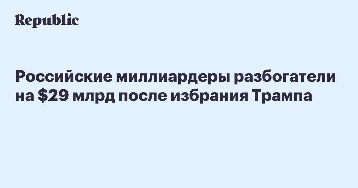 Российские миллиардеры увеличили свое состояние на $29 миллиардов после того, как Дональд Трамп победил на выборах президента в США. Об этом пишет Forbes.