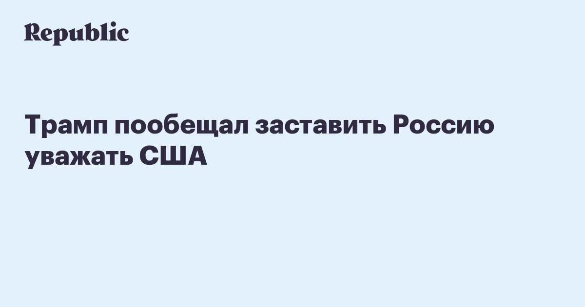 Избранный президент США Дональд Трамп заставит Россию уважать его страну «больше, чем при каком-либо другом президенте».