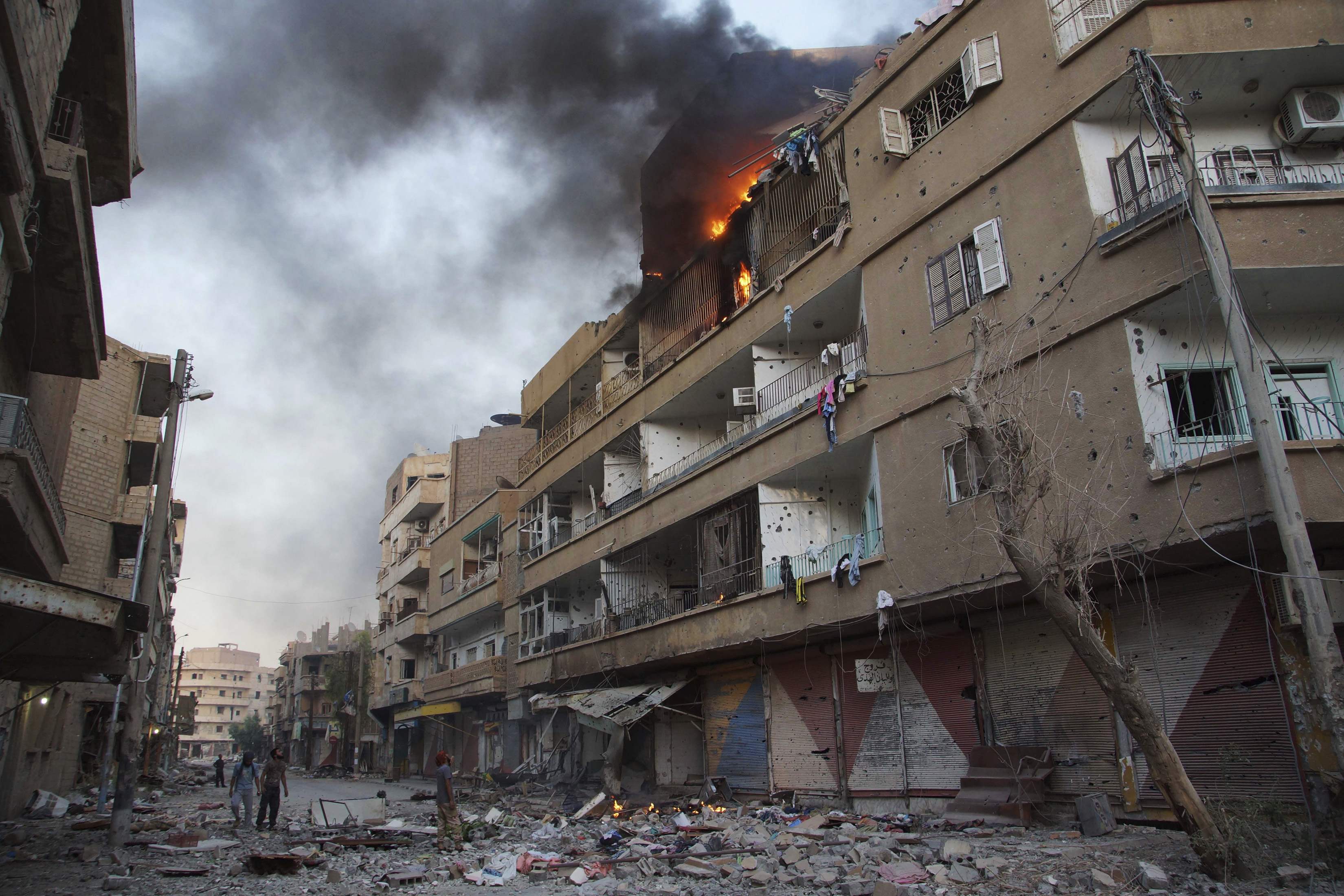 ИГ, которая контролирует большую часть провинции Дейр аз-Зур, с 2014 года пытается взять ее столицу под полный контроль. Правительственные силы выдержали осаду благодаря поставкам вооружений через военный аэродром, а также гуманитарной помощи, которую сбрасывают с самолетов.