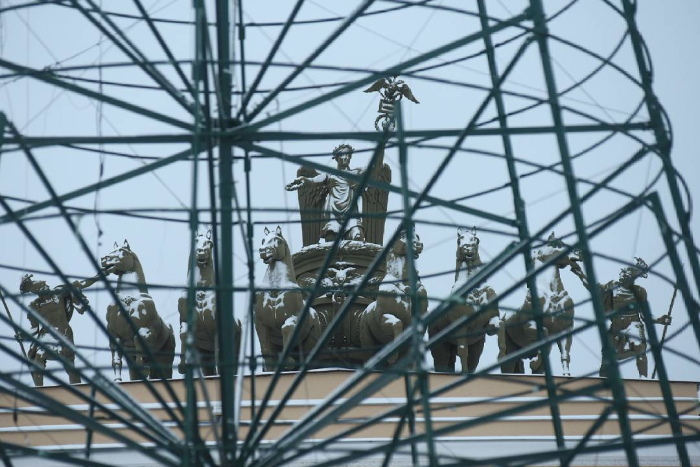 На Дворцовой площади в Петербурге разобрали новогоднюю елку.