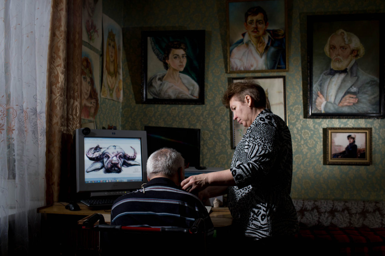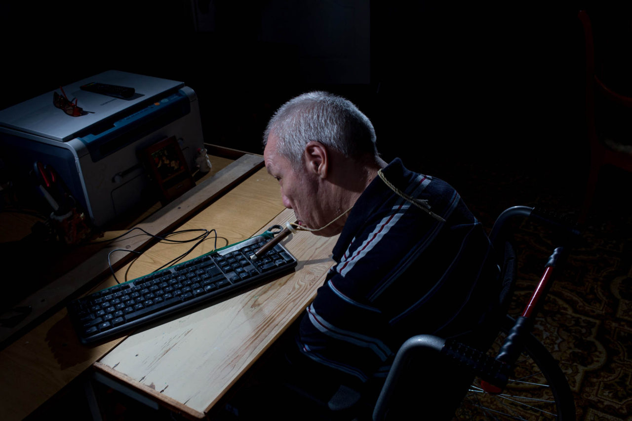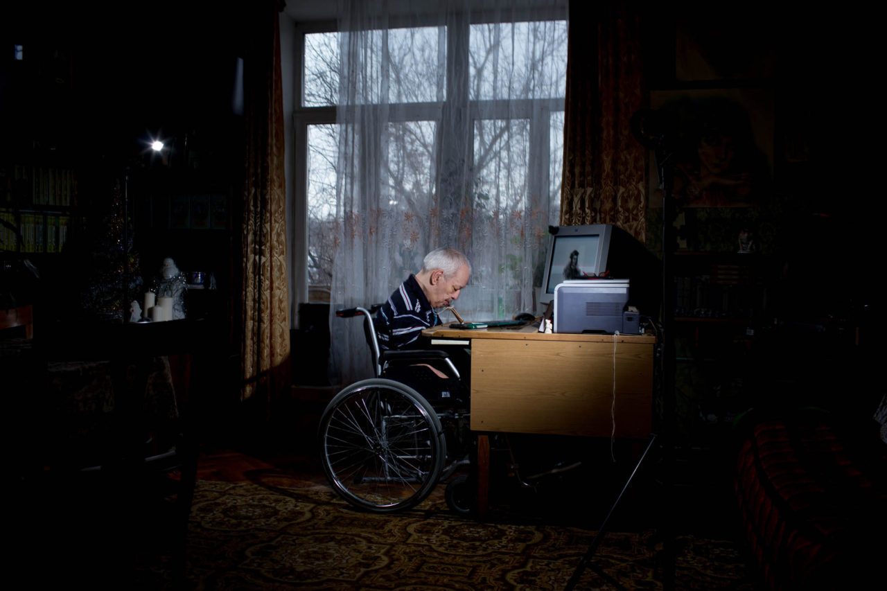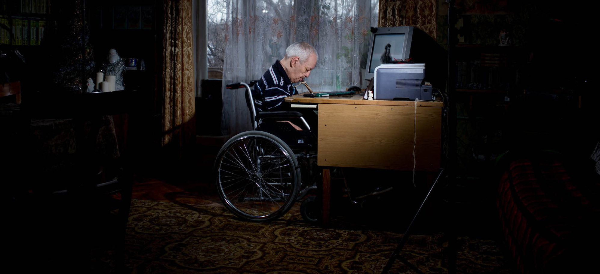 Александр за работойФото: Арсений Несходимов для ТД А потом мамы не стало. Она прожила долго, почти 90 лет. Мудрая, любящая женщина, вышедшая на поединок со злой судьбой и победившая. Умирать не страшно — страшно оставлять близких, да еще и таких физически несамостоятельных, как Саша. Мама рассудила просто — завещала квартиру благотворительному фонду «Рука помощи» в обмен на круглосуточную сиделку. Маму, конечно, заменить никто не в силах, но все же… У Саши теперь есть Людмила — его руки, его ноги, глаза, его ангел-хранитель, няня, друг.