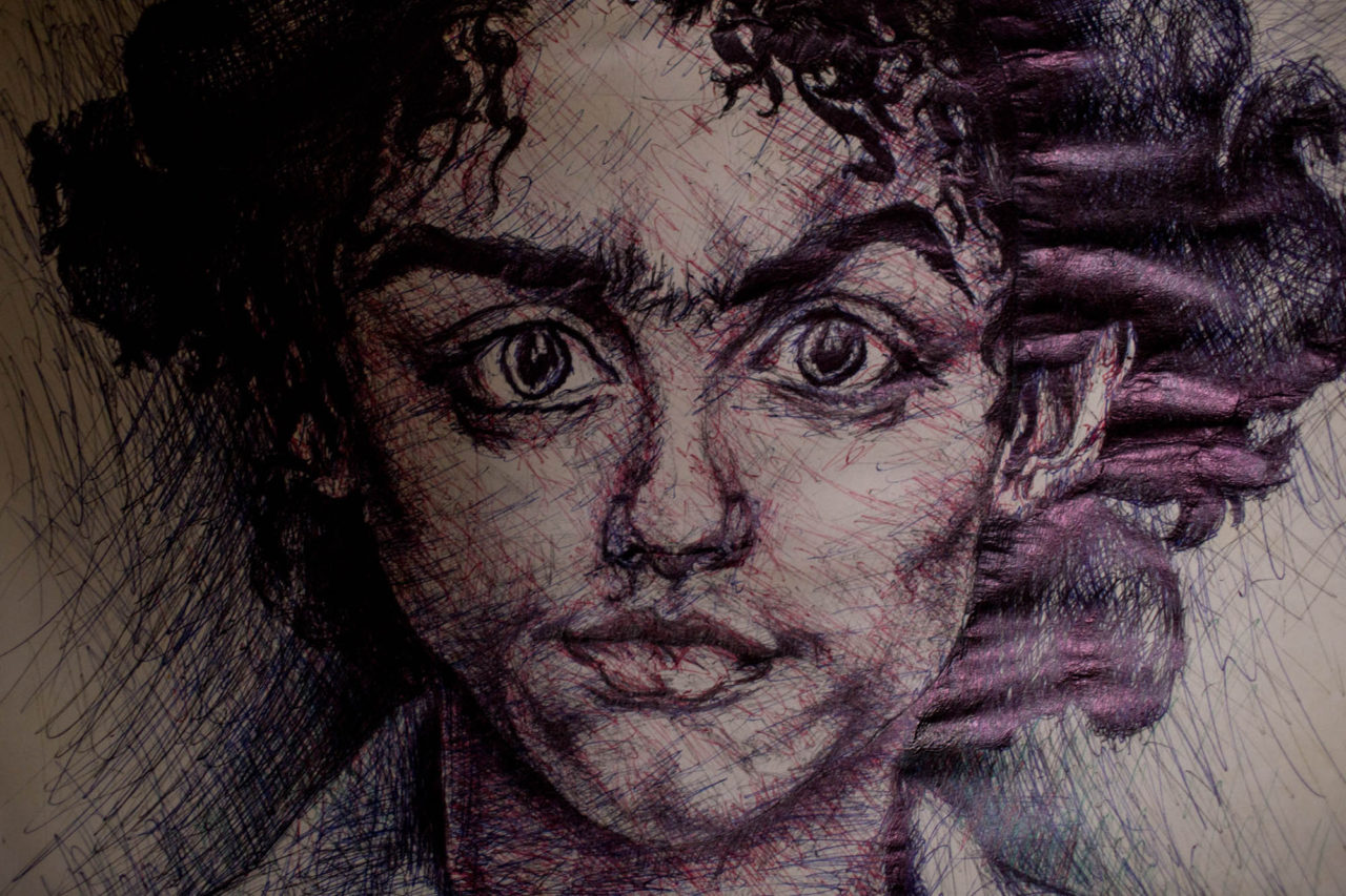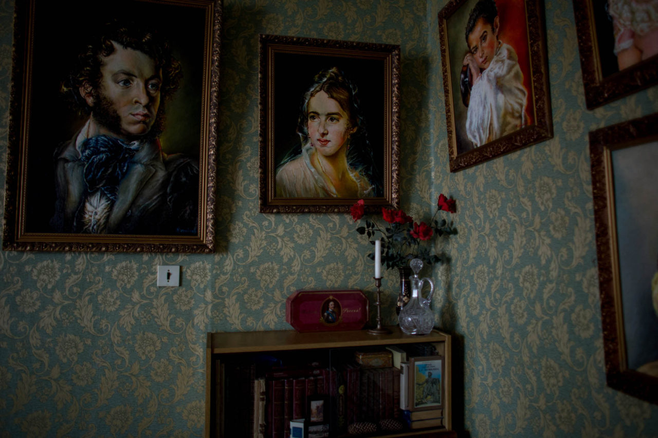Саша обожает Пушкина. Когда-то, уже довольно давно, написал его портрет. Исключительный портрет — живой, немного надменный, непривычно суровый поэт задумался о чем-то невеселом. Словно только что узнал о притязаниях Дантеса. Или уже на дуэль собрался. Словом, нигде такого Пушкина мы не видели. А у Саши на Фрунзенской набережной в Москве он такой вот, совсем особенный. А потом Саша написал портреты пушкинского семейства — Натальи Николаевны и всех четырех детей. Потом портреты Тургенева, Лермонтова, принцессы Дианы, царя Давида, сказочных принцесс — в общем, разношерстный и впечатляющий набор личностей. Портреты все, как правило, большие — Саша пишет картины, как-будто собирает паззл, кусочками. По-другому никак — ему ведь не дотянуться до другого края листа. Мама эти кусочки соединяла вместе, в одну большую картину. Такая вот специфика творчества.