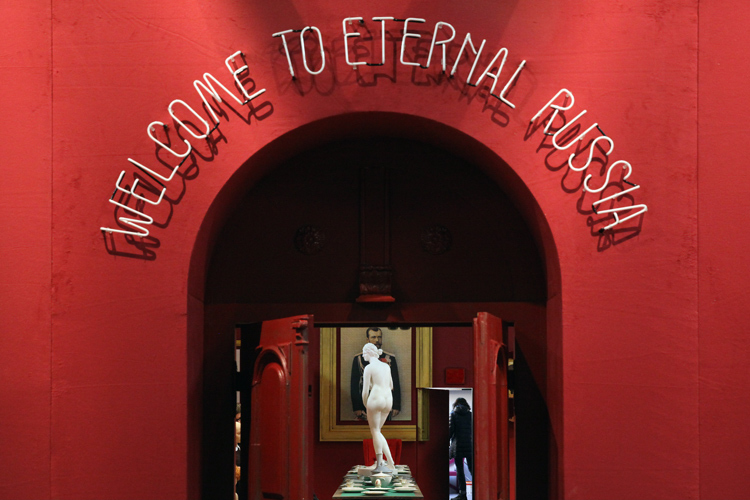 — Все обстоит с точностью до наоборот — параллелей с 90-ми годами я как раз сознательно старалась избегать. Матрица современной России задана тоской по двум имперским эпохам — дореволюционной и сталинской; все, что было после, — оттепель, застой, 90-е годы — не более чем интермедии по отношению к этим главным сюжетам. Поэтому я работаю с дореволюционной, революционной, сталинской Россией — а дальше перепрыгиваю прямиком в наши дни: нам казалось, что в 90-е годы мы куда-то вроде бы вырвались, а в итоге все равно пришли обратно в Eternal Russia. На том месте, где у нас висит портрет Николая II, а потом портрет Сталина, в конце концов, вопреки ожиданиям, не появляется портрет Путина — там висит нечто другое, сами увидите, что именно.