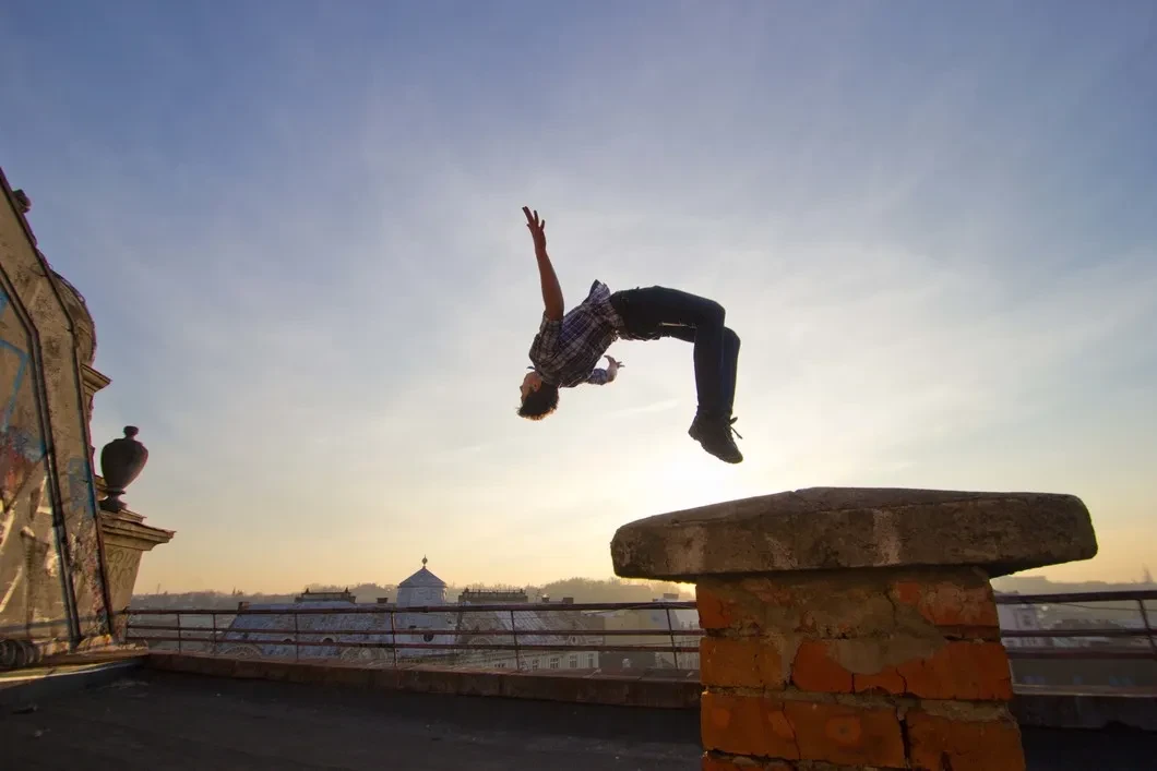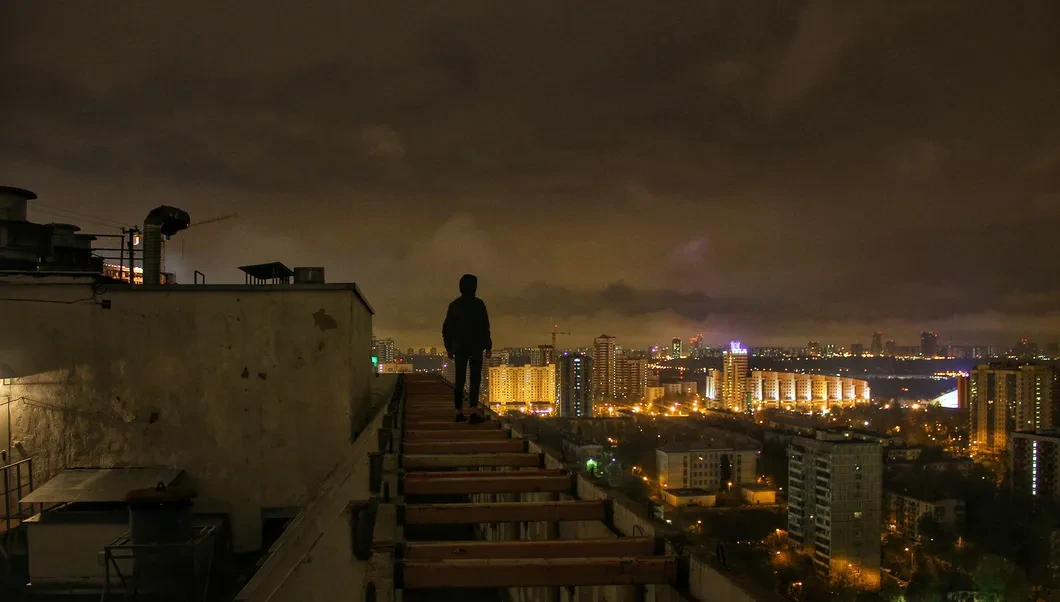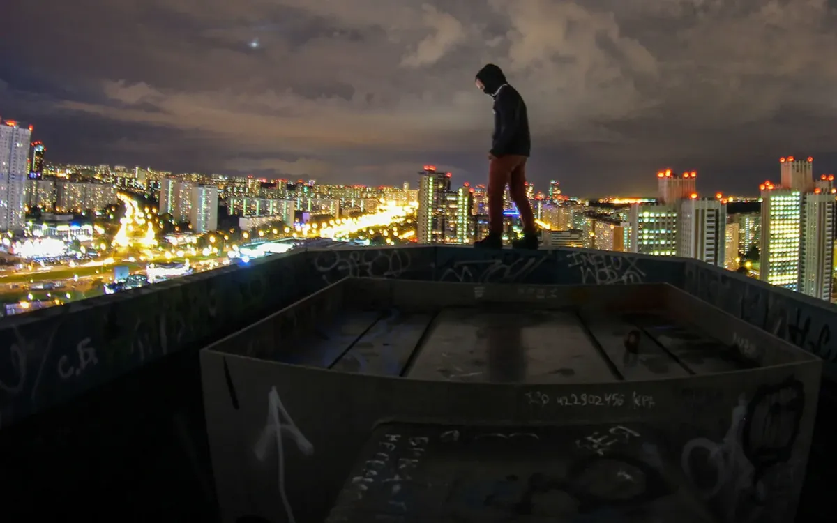 Мы с Женькой неспешно идем по вечерней набережной Воробьевых гор. Он — в черной куртке, со спрятанными под капюшоном черными кудрями, похож на киногероя. Рассказывает, что начал «этим заниматься с раннего возраста». Сначала — «зацепингом», потом — «руфингом».