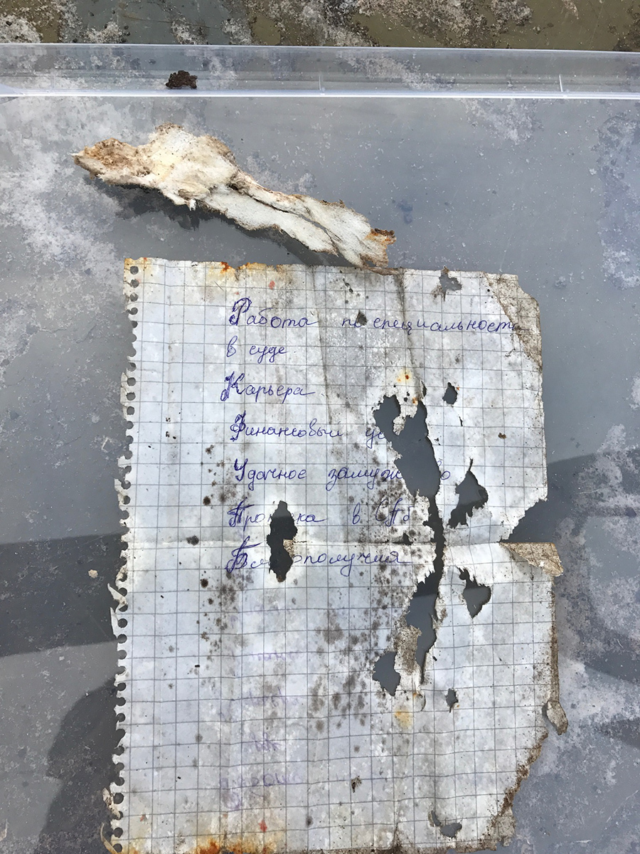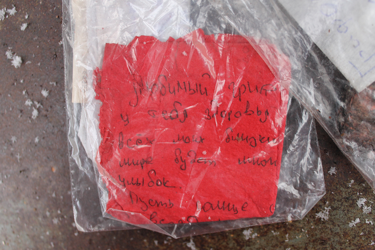 С Банковского моста сняли грифонов. Внутри крылатых львов нашли записки, которые оставляли петербуржцы. Мужчины, прописка, работа в суде и счастье дочери — «Бумага» публикует фотографии посланий горожан к грифонам.