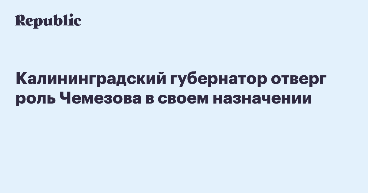 Калининградский губернатор отверг роль Чемезова в своем назначении