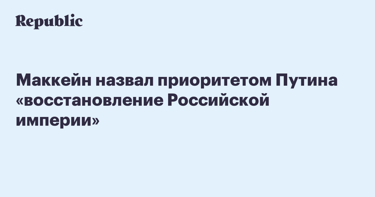 Сенатор США Джон Маккейн в интервью MSNBC назвал приоритетом Путина «восстановление Российской империи».
