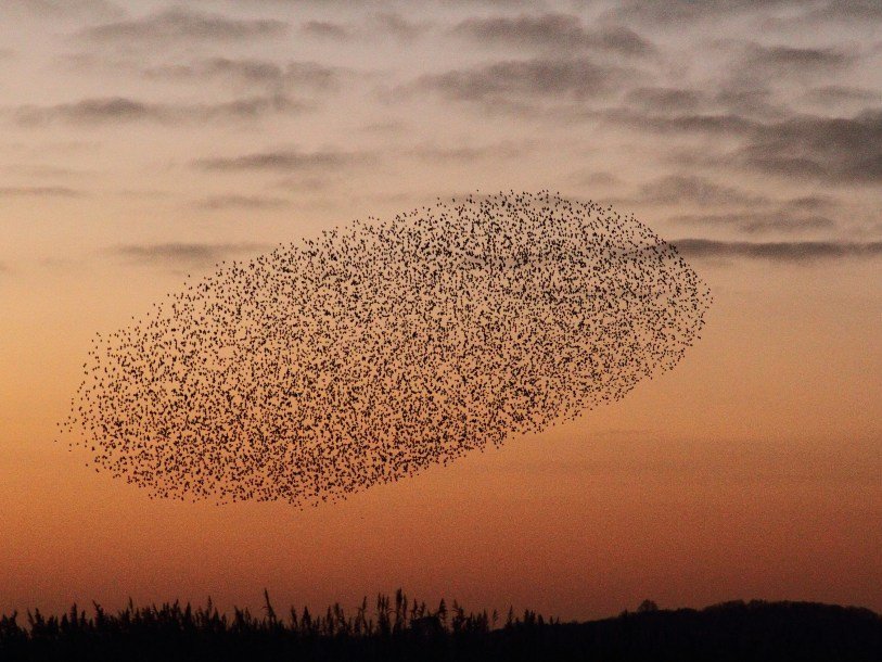 Ученые строили сложные математические модели, описывающие поведение скворцов во время такого танца, и выдвигали различные гипотезы по поводу его функции. Предполагалось, в частности, что так скворцы запутывают хищных птиц, которым трудно вычленить из хаотически движущейся стаи одного скворца и напасть на него. Подтвердить это предположение решили, использовав видеоигру, в которой роль хищных птиц исполнили 25 человек. Они должны были преследовать виртуальных скворцов, чьи движения были смоделированы на основе данных реальной стаи. Результаты игры подтвердили предположение ученых. Чем больше был размер моделируемой стаи, тем труднее было для “хищников” вычленить и поймать отдельную птицу.
