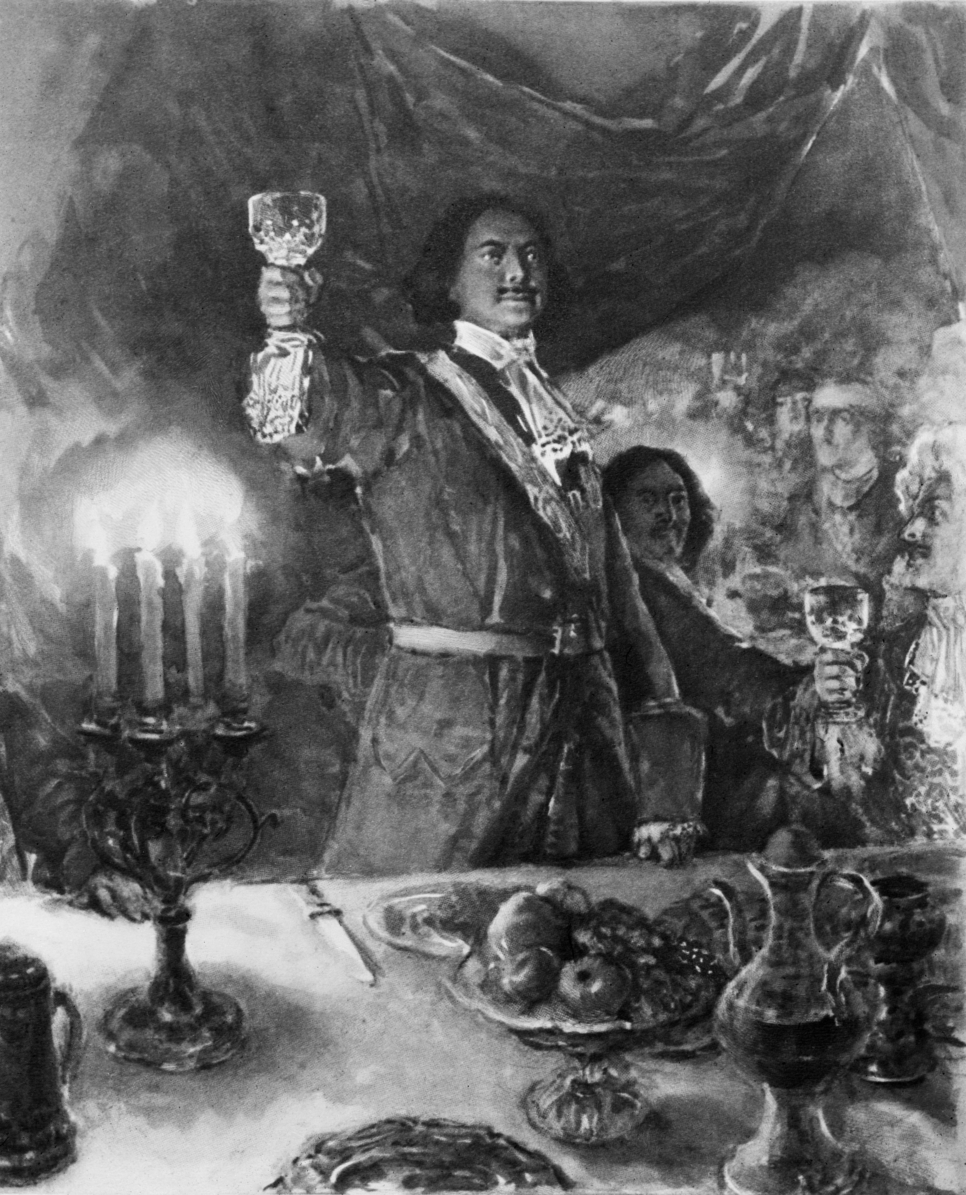 А в поколении Шеридана еще пьянствовали. "Пьянствовали и стар, и млад. Причем, чем выше был сан, тем больше человек пил. Без меры пили почти все члены королевской семьи. Считалось дурным тоном не напиться во время пиршества. Привычка к вину, жертвой которой стал Шеридан, считалась своего рода символом мужественности во времена, когда крепко зашибал молодой Веллингтон, когда Протестант (это его прозвище было), герцог Норфолкский, упившись, валялся на улице так, что его принимали за мертвеца, и когда спикер парламента Корнуолл сидел в Палате общин за баррикадой из кружек с портретом, председатель, достойный своих багроволицых подопечных. В Лондоне насчитывалось 17 тысяч пивных, и на двери чуть ли не каждого седьмого дома красовалась вывеска, зазывавшая бедняков и гуляк из мира богемы выпить на пенни, напиться на два пенса и проспаться на соломе задаром. А Польша? Польша, наша учительница, из Польши мы учились западничеству. Вот при Августе Сильном она выглядела не лучше, и Август Сильный продолжал разгульные привычки времен Яна Казимира и Яна Собеского. И наблюдая своих братьев-потентатов, Петр мог убедиться, что отношение к веселью у них отнюдь не религиозное, они, что называется, веселились от души. Хотя, надо сказать, без меры, и подражать им, пожалуй, не стоит.