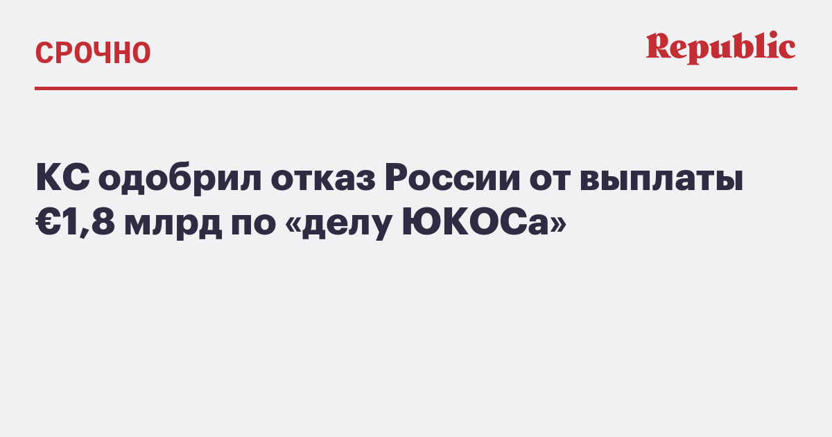 КС одобрил отказ России от выплаты €1,8 млрд по «делу ЮКОСа»