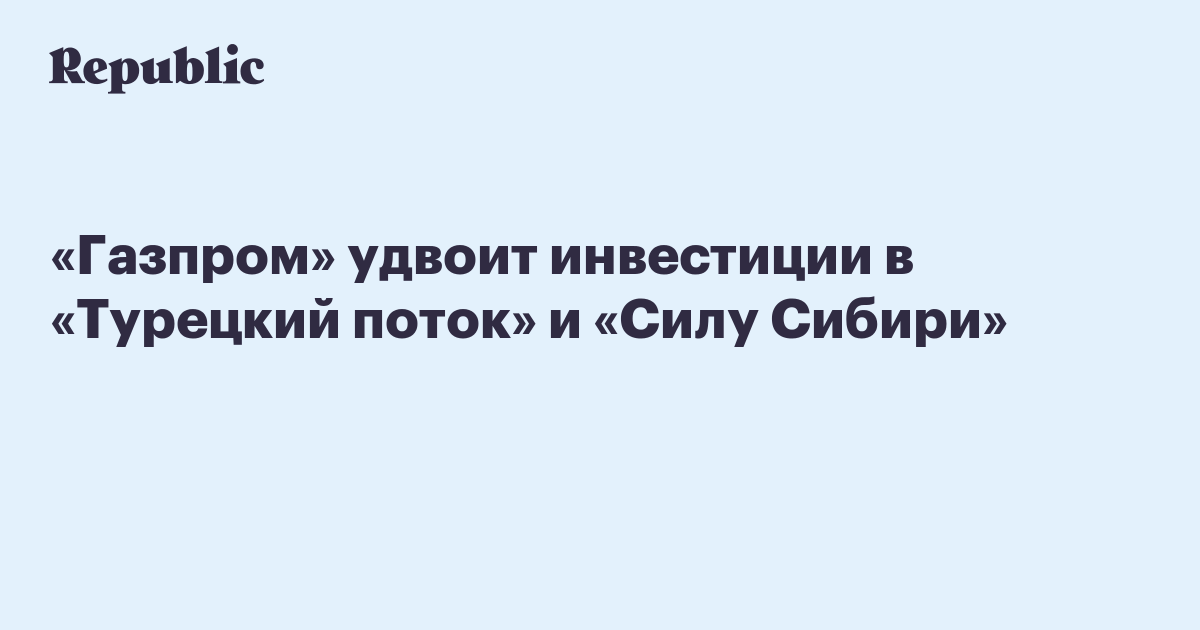 «Газпром» удвоит инвестиции в «Турецкий поток» и «Силу Сибири»