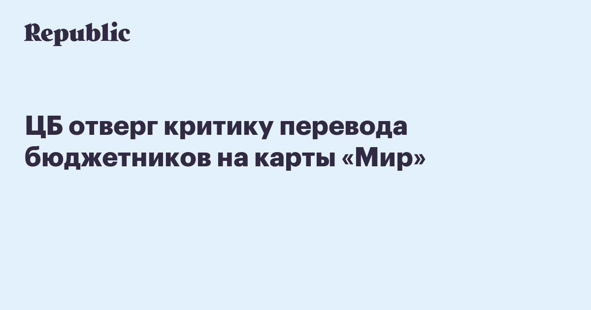 ЦБ отверг критику перевода бюджетников на карты «Мир»