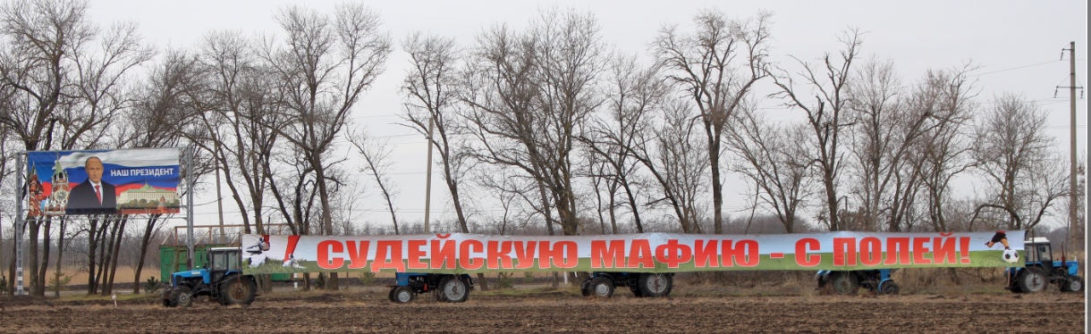 Руководителя сельскохозяйственного предприятия «Сфера» в Краснодарском крае Нину Попову осудили на 40 часов обязательных работ по ст. 20.2 КоАП (нарушение порядка проведения публичного мероприятия) за то, что на сельскохозяйственных угодьях «Сферы» был размещен баннер с надписью «Судейскую мафию — с полей!». Об этом 21 января сообщает издание «Голос Кубани».