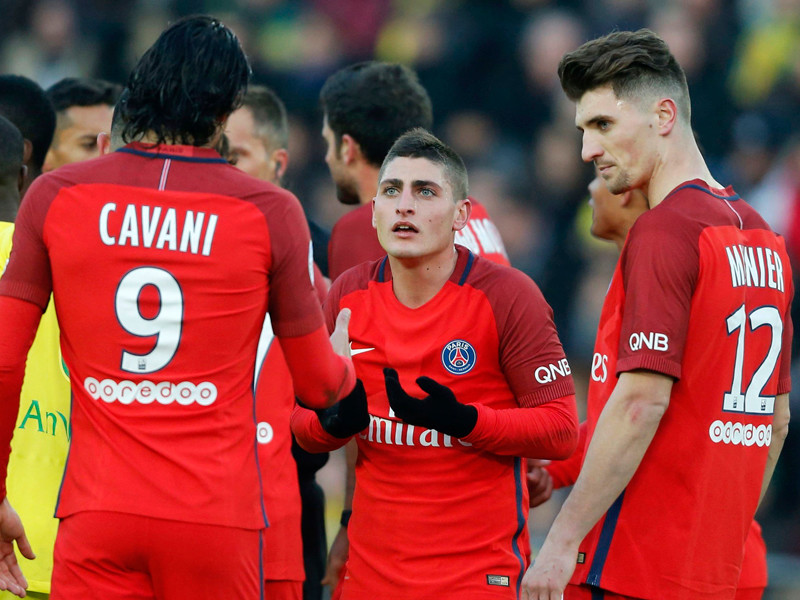 Полузащитник "Пари Сен-Жермен" Марко Верратти на 30-й минуте матча чемпионата Франции с "Нантом" опустился на колени и головой катнул мяч своему вратарю Кевину Траппу.