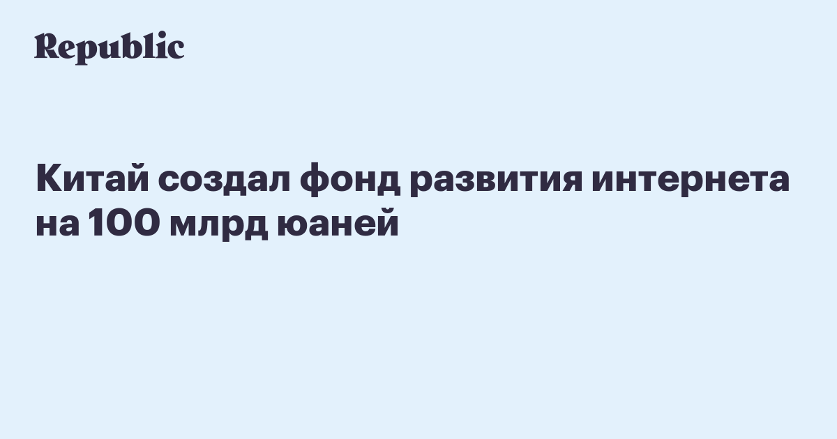 Китай создал фонд размером 100 млрд юаней ($14,55 млрд) для инвестиций в интернет. Об этом сообщает Reuters со ссылкой на агентство «Синьхуа».