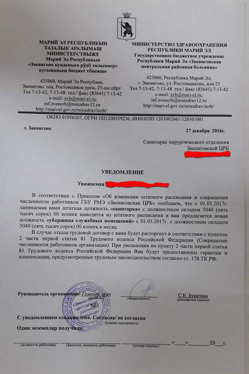 Следствием очередного обрезания бюджета здравоохранения стало то, что в республике в массовом порядке среднему медицинскому персоналу стали настоятельно предлагать перейти на должности рангом ниже. Так, санитаркам предлагают стать уборщицами. При этом, на первый взгляд, такой работник, пониженный в ранге, не теряет в финансовом выражении – у тех и у этих оклад 5040 руб. Однако у нас, как всегда, «все всё понимают». Все понимают, что окончательное вознаграждение хоть и привязано к окладу, но имеет свои нюансы. И санитарки, как бы мало они не получали, но получают в окончательном виде все же больше, чем уборщицы. Кроме того, став просто уборщицами, они не перестанут выполнять обязанности санитарок, уборщицам не присущие. Вот так минздрав республики «оптимизирует» больницы в условиях сокращения финансирования.