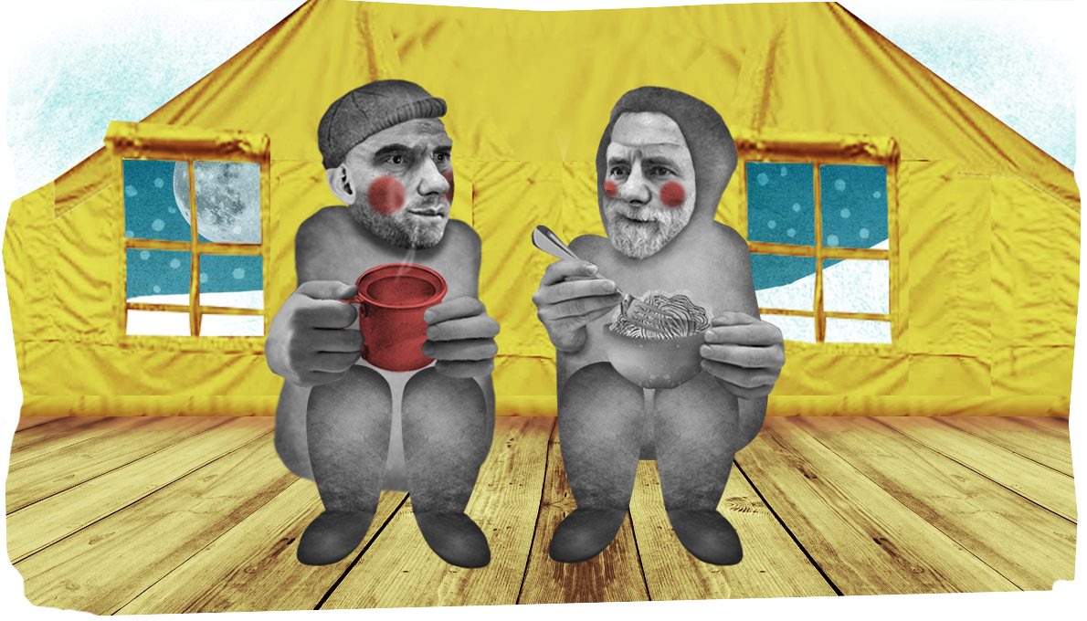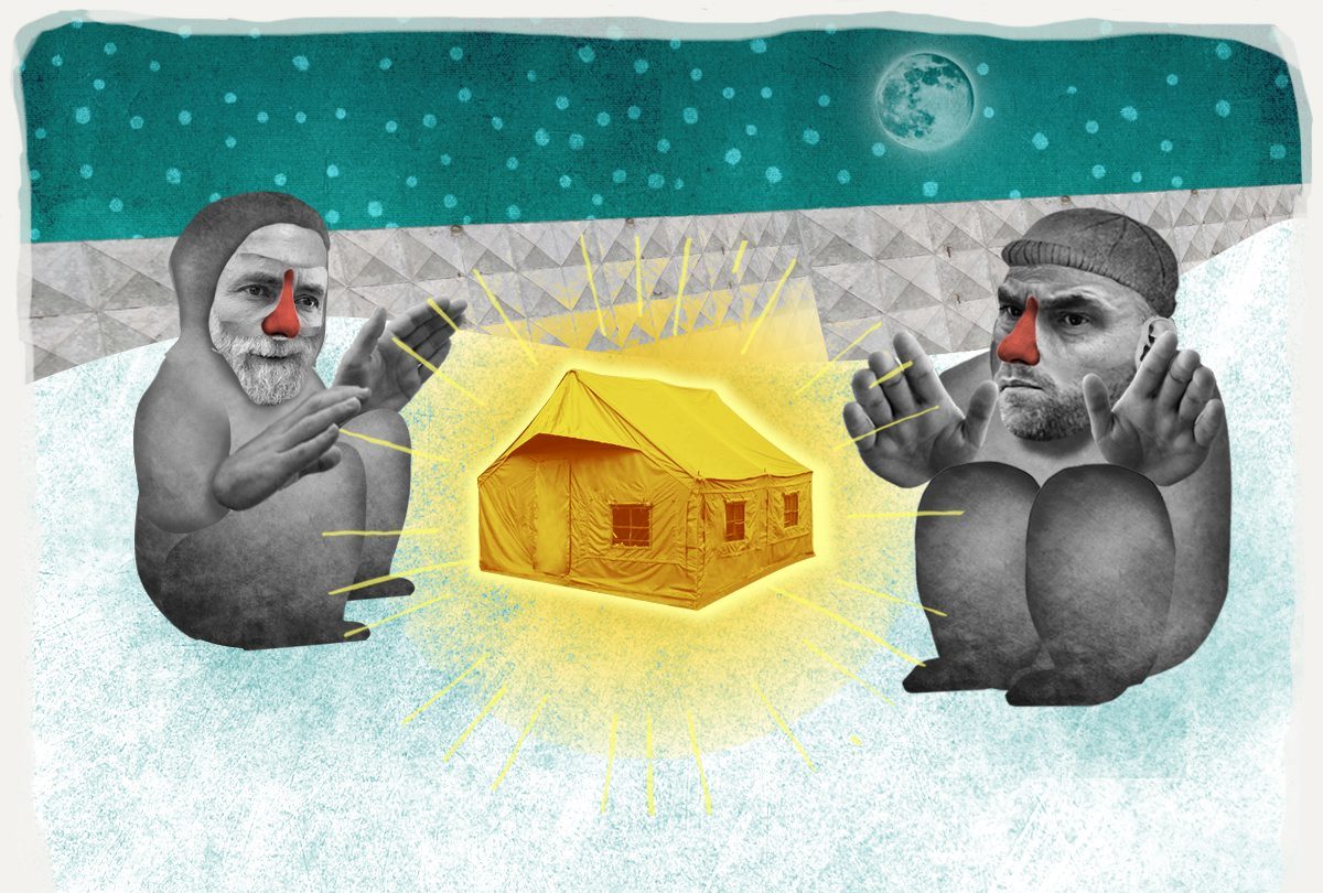 Помогаем Ночлежка Помочь«Да это явно не простой человек, не ночлежник, точно тебе говорю!» — долетают до меня обрывки разговора. Двое мужчин едят лапшу и заинтересованно наблюдают, как я раскладываю на туристическом коврике вещи. Обстановка напоминает детский оздоровительный лагерь. Мощный обогреватель сильно шумит, но зато заполняет теплом всю армейскую палатку. На улице промозглый холод, штормовой ветер и снегопад, а здесь, под шатром, сухо и даже жарковато. У стен палатки, прямо на голом ДВПшном полу, лежат «пенки», с потолка свисают несколько лампочек. Стульев и одеял нет. И все же, несмотря на спартанские условия, даже я рад оказаться здесь в такую погоду.