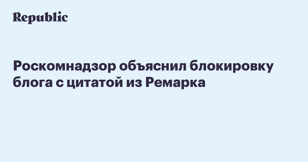 Роскомнадзор объяснил блокировку блога с цитатой из Ремарка