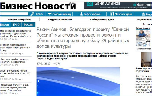 Казалось бы, судьбу федеральных средств должны решать депутаты Законодательного собрания? Но когда у власти "доминирует" одна какая-то партия, то и правила вырабатываются особые, чаще удобные для пропаганды этой партии. Подосиновляне помнят, когда при начале строительства моста через реку "Юг" на строительной технике, принадлежащей отнюдь не частной фирме, появились наклейки Единой России. Так и здесь, как сообщается в СМИ, куратором проекта стал депутат Государственной Думы РФ Рахим Азимов, а конкурсные заявки рассматривались на заседании общественного совета, в который вошли: