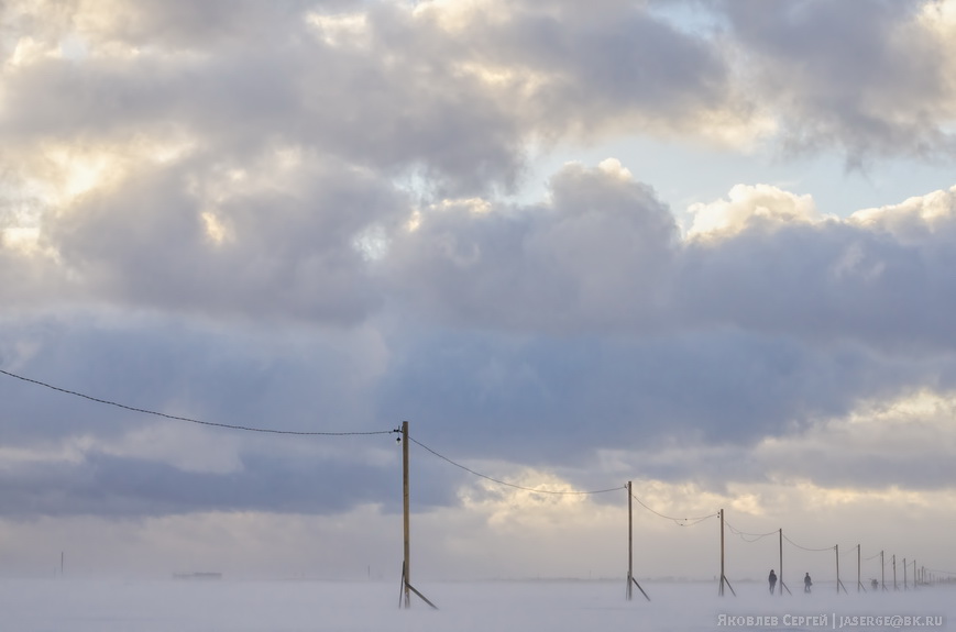 Закаленные кегостровцы преодолевали ледовую дорогу. Часть плафонов с фонарей на переправе посбивало ветром и круглые стекляшки катало как перекати-поле по пустыне.