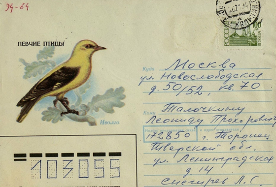 © Коллекция Леонида Талочкина / Архив Музея современного искусства «Гараж» Конверт письма Льва Снегирева Леониду Талочкину. 10 ноября 1994 года С 1 февраля по 23 апреля в Музее современного искусства «Гараж» в Москве пройдет выставка «По направлению к источнику», которая представит итоги исследования архивной коллекции музея, проведенного художниками разных поколений.