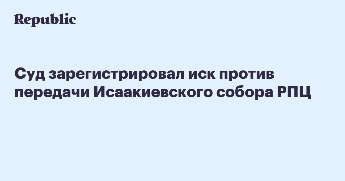 Василеостровский районный суд Санкт-Петербурга зарегистрировал иск о передаче Исаакиевского собора РПЦ, передает РИА Новости.