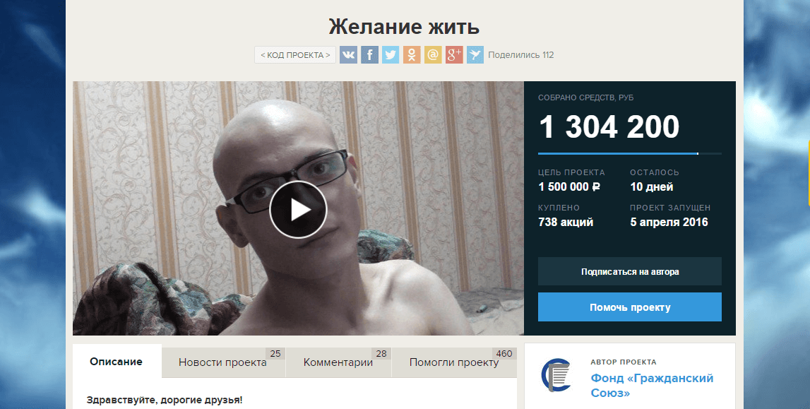 «Есть и необычные примеры: зайдя в краудфандинговый проект «Желание жить» , один пользователь решил поддержать его не деньгами, а связался с автором и купил для молодого человека, героя проекта, электроколяску. То есть, успех в данном случае связан с вещами». Алексей Сахаров.