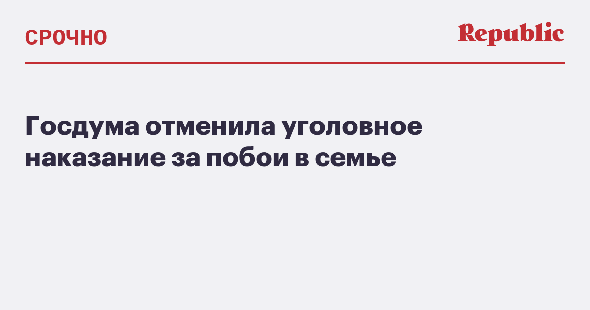 Госдума в третьем чтении приняла законопроект, отменяющий уголовную ответственность за побои в семье. За проголосовали 380 депутатов, против – трое, трансляция велась на сайте Думы.
