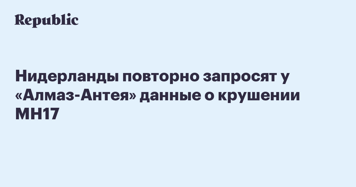 Нидерланды повторно запросят у «Алмаз-Антея» данные о крушении MH17