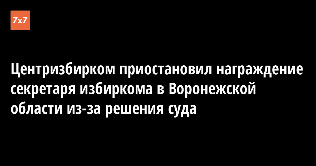 Центральная избирательная комиссия (ЦИК) приостановит поощрение секретаря территориальной избирательной комиссии (ТИК) в Воронежской области, в работе которой суд увидел нарушения, влияющие на легитимность выборов. Об этом 30 января сообщили корреспонденту «7x7» в пресс-службе Центризбиркома.