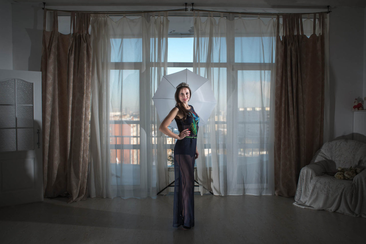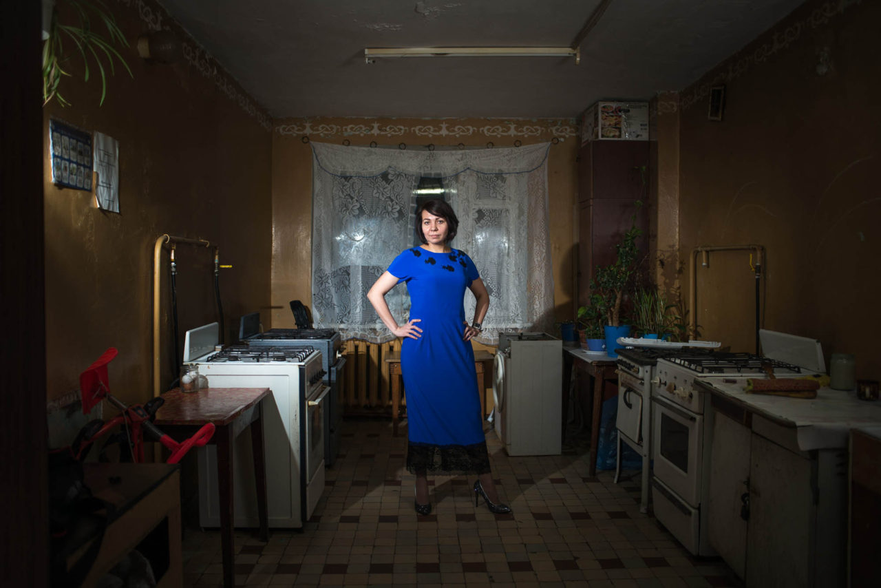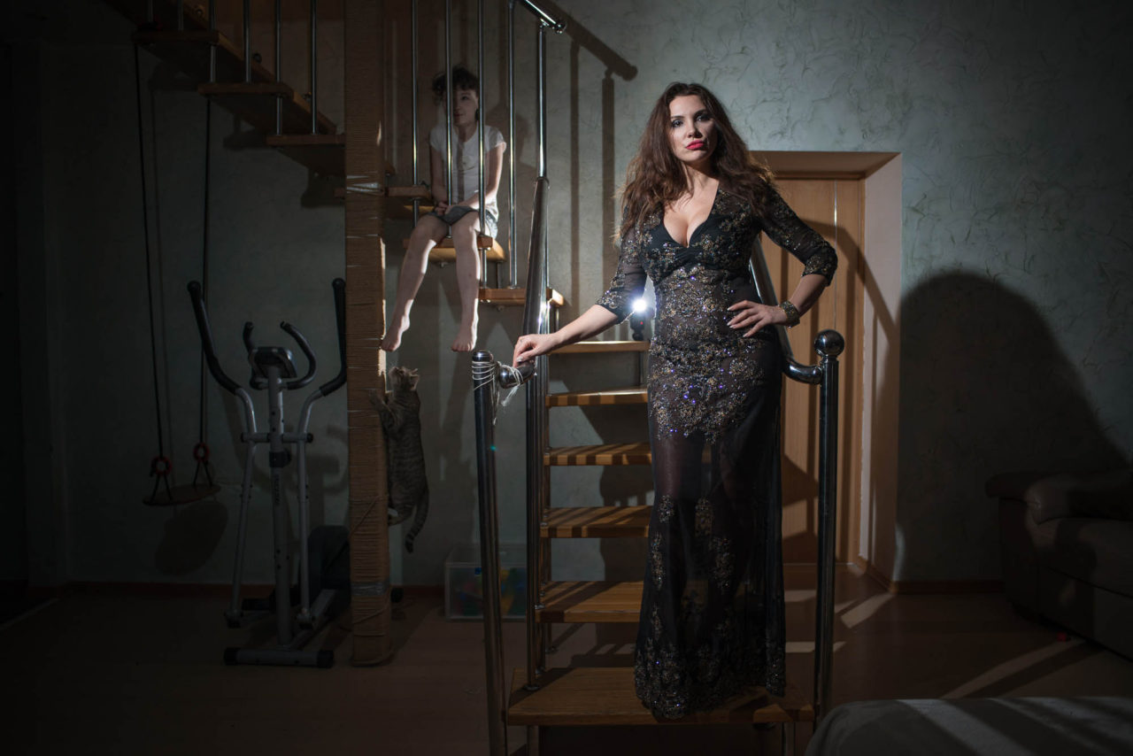 Ольга позирует фотографу на кухне в общежитии, в котором она живет со своими детьми. Игорь и Ольга одноклассники. Платье шили для новогоднего корпоратива в прошлом годуФото: Сергей Карпов для ТД Платье превращается