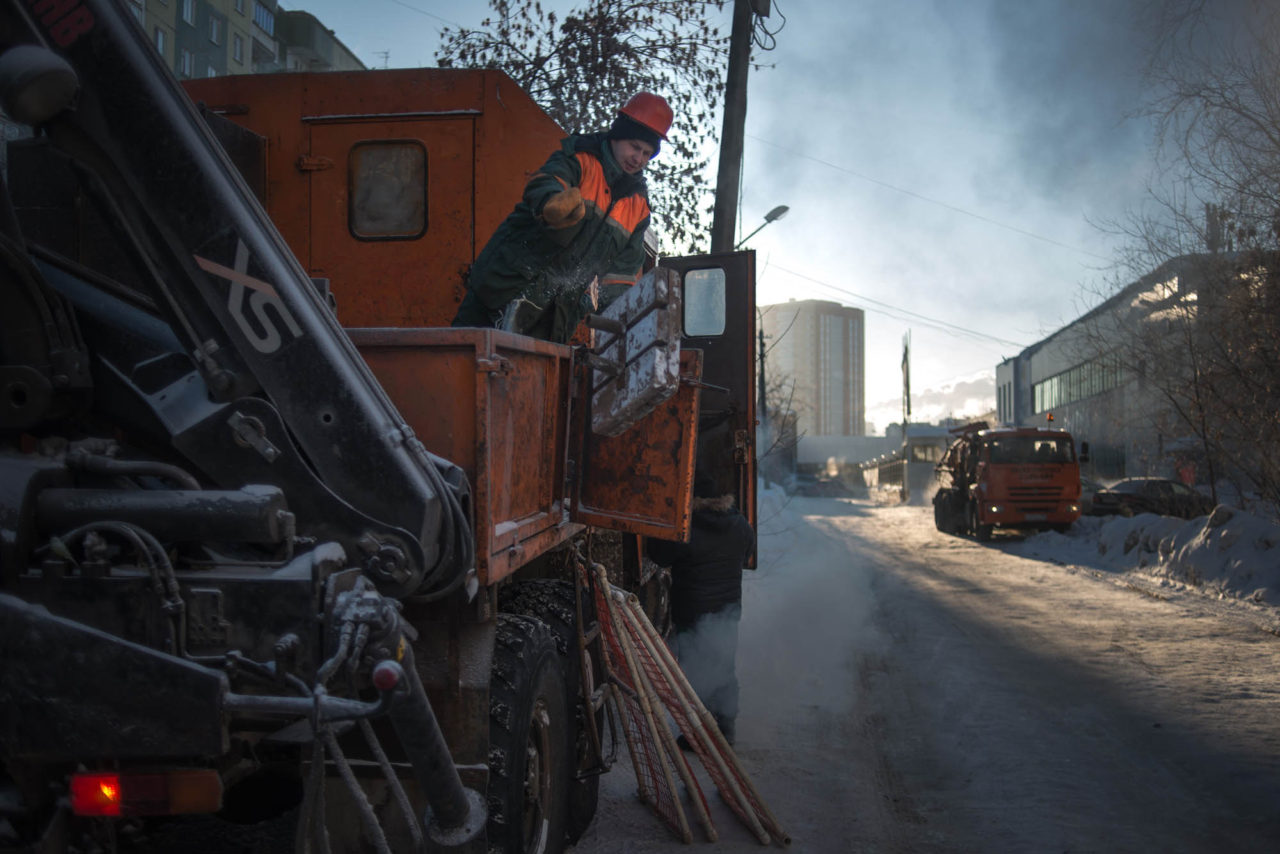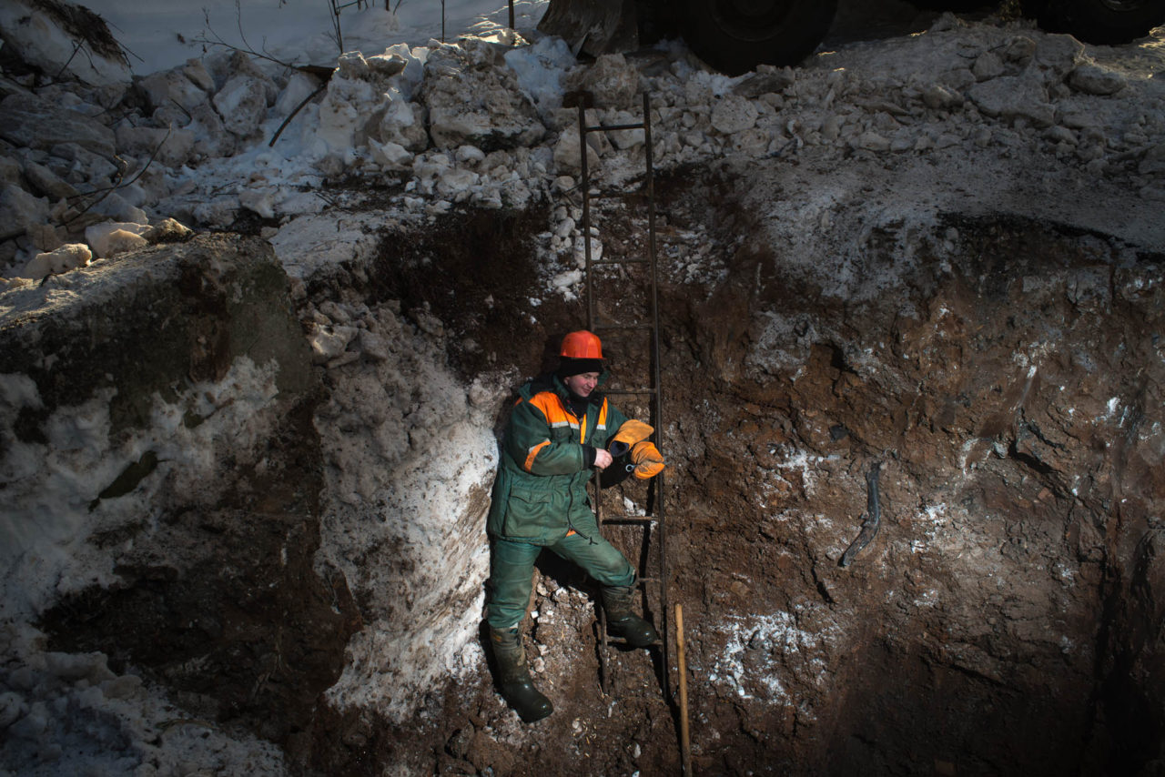 Работа у Игоря тяжелая. То надо заливать трубы горячим свинцом, и есть риск обжечься. А то тяжелой кувалдой по руке попадешь. Недавно пилил пластиковую трубу, пилой поранил руку. Часто оборудования не хватает, и многое приходится делать вручную. Утечка — самая частая проблема. Сначала Камаз с бочками и шлангом откачивает воду из колодца, потом подключается бригада слесарей. «Утечку мы устраняем очень современным способом. Затачиваешь черенок лопаты как кол для вампира, потом спускаешься вниз и, преодолевая напор ледяной воды, который хлещет в тебя из отверстия в трубе, пытаешься, матерясь, забить дырку этим колом. Воду отключать не разрешают, поэтому приходится работать под давлением. Еще в колодцах часто мусор, пакеты, осколки стекла, а все делаешь голыми руками. Если есть возможность, то сварщик потом делает поверх заплатку. Но часто эти колышки так и остаются в трубах и могут простоять годами, — рассказывает Игорь. — У меня такое впечатление, что в Перми уже живого места нет, город весь в заплатках. Нормальный человек смотрит на улицу и видит дороги и тротуары, а я вижу люки, раскопки и трубы. И вампирские колышки в них. Не бывает ни одной смены, чтобы что-то где-то не прорвало».