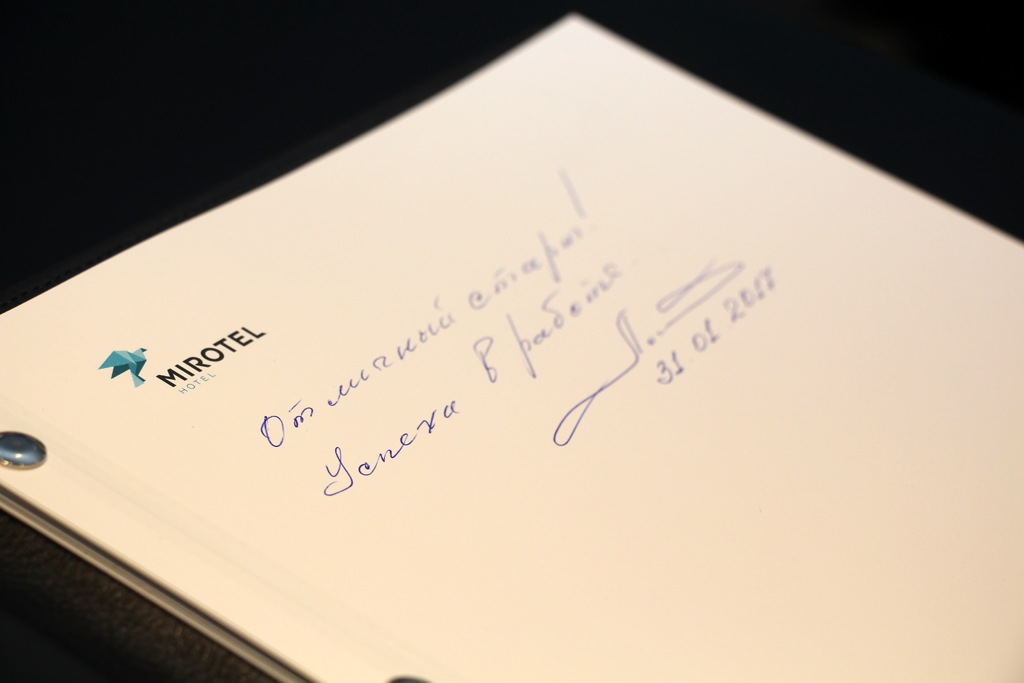 Красную ленточку на открытии перерезали мэр Новосибирска Анатолий Локоть и директор гостиницы Алексей Швецов. «Мне это сразу демонстрацию напомнило», — заметил последний, вставляя красный обрезок в нагрудный карман по настоянию градоначальника. «Ну, я же опытный человек», — парировал Локоть. После перерезания ленточки директор MIROTEL провел экскурсию для мэра и почетных гостей.