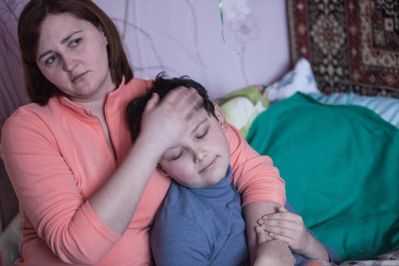 «Не вспоминай, пожалуйста!» — просит Тимур. Он смотрит на маму с огромной нежностью, даже когда сердится и ворчит— Потом нам назначили второй курс химиотерапии — метотрексат, — вспоминает Татьяна. — Это очень сильная химия, желтая такая штука. Доктор, когда ее приносила, говорила: «Тимур! Тебе сейчас апельсинка будет капать»…